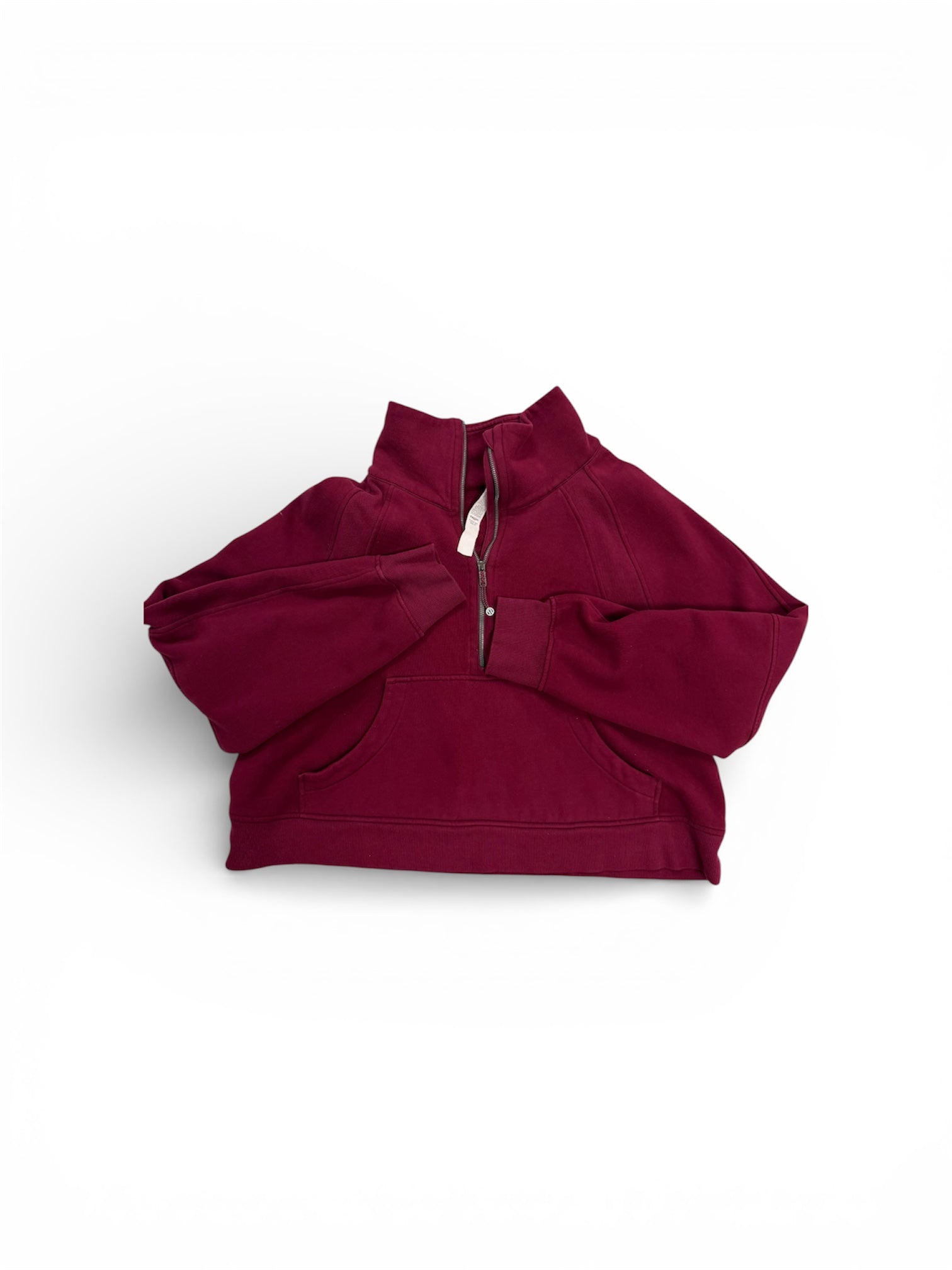 Preloved Cozy oversized Scuba pullover with a funnel-neck half zip (no hood). Soft fleece fabric with a relaxed fit—perfect for everyday wear.